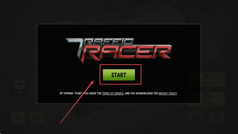 1、进入游戏后,首先在醒目的开始界面,找到并用手指点击那个绿色的START按钮,阅读并同意相关协议。